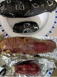 みな様♡ こんにちは✨ 今朝は室温が21度もあって洗濯が終ると汗ばむ感じ長袖の下着を夏用に変えました。 だんだんと曇ってきて雨の降る予報です。 夜から明日の朝は真冬の寒さだそうです。 ほんと、体調管理が大変です(^^;) 大きなシルクスイートと小さな甘太くんをトースターで焼きました。 甘太くんは20分、シルクスイートは40分で何とか焼けたようです。