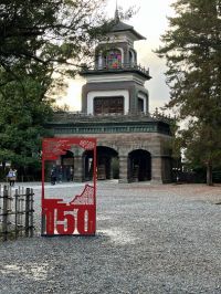 兼六園周辺最後は尾山神社です。こちらも義母が行きたかった所でわたしはちゃっかり御朱印帳を持って来ていたので伺うと、こちらは全て書き置きになってました。 加賀藩祖・前田利家公と正室・お松の方を祀ってます。 色ガラスをはめ込んだ和洋折衷の神門は夜のライトアップもしているそうです。