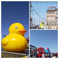 過去にこちらのトピで紹介されていたのを見て興味を持っていたため、この前の日曜日にすみのえアートビート2023で旅するラバー・ダックを見てきました。会場の造船所跡の入口には遠くからラバー・ダックが確認でき大変わくわくしました。 他にダブルデッカーや町のゆるキャラ、大阪万博キャラクター・ワクワク、キッチンカーと屋台に老若男女が集って楽しいイベントでした。