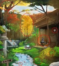ミルさま。 ごめんなさいm(_ _)m ミルさまの答えを見て改めて原画を見たら、 ミルさま合ってます! つくばいの明るさを変えてました。 正解でーす*\(^o^)/* この元画像の池には水が入ってなかったので、水を入れたのが一番満足しています。←裏話(笑)