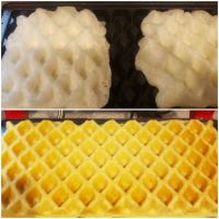 あまえびちゃん 上下で挟んで焼くから、流し込む生地の量をへらしてふくらし粉入れたらふわふわするかしら? どっしりしてるから1/4でお腹いっぱいになっちゃった(-""-;)