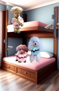 ザリガニくん♪、ワンコ用品作りに根を詰め過ぎて倒れていないとイイけど... ˖(*ฅ´ロ`)ฅ<オーイ、生きてるかぁー? 【添付画像】妄想作品集その1 二世帯ワンコのベッド #画像 #ベッド #ビリ子 #ラン #コットン #ラッテ #干渉過多な義両親