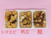 せっかくなので中身の珍味?並べてみました。 帆立ちょっと見辛いかも…。スミマセン。 珍味の割合、個人的感想ですが、おかき:珍味 (9:1)って思いました。 この中ではダントツ北海道シマエビが美味しかった( *ˊᵕˋ*) 〜ᐝ♡ 1位エビ、2位帆立、3位鮭でした。なんか、昔食べた時は鮭美味しかったのに…。ちょっとガッカリ。 確か前にザリガニくん♪、この野付北海シマエビ見せてくれたよね? これ期間限定品だそうで、店頭のPOPにもそう貼られてました。 ノムちゃん、渺渺さん、もし食べる機会ありましたら、選ぶならシマエビおすすめデス!(*^^*) オーナーさん。バカンスどうですか?のんびり過ごせてますか(^^) 私は地味にティアキン頑張ってます♪ でも頑張ってはいるんだけど未だ井戸見つからず、コログの実だけが増えて行ってます(;∀;) オーナーさん、皆さん、また明日ちょこっと持って来ます。色々時間足りなくて(^^;; ではまた明日ー♪