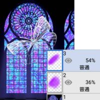 ハロウィーンゴーストのロピアの館、(*^ー゚)b グッジョブ!! 白抜きを重ねてゴースト擦る時に「場所によっては目立つ所と目立たない所」が出て来たら… ②③は同じコピー蝶で、②は全部(見えにくいから紫で…)③は消しゴム(エアブラシ)で半分削って… もちろん、一枚のレイヤーを削ってもエエけど~、後から透明度をイジって濃淡の調整しやすい…って、小ワザッス。 #画像 小ワザハウツー
