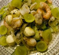 プッタネスカ、美味しい。 付け合わせに、シーフードマリネもどうぞ。 マスカットと合うよー。