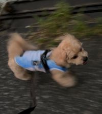 早歩きが興奮を呼んでいる事もあるのでしょうか? ストップしても「GO」でスイッチオンになる事も多いので、「GO」が「よーいドン!」になっている可能性も…(ーー;) 難しいです…。 日曜日夕方のお散歩ですが、歩きながら撮ったのでブレブレで唯一顔がハッキリ写っているのがコレでした。 #画像 #ラン 早歩きでお散歩