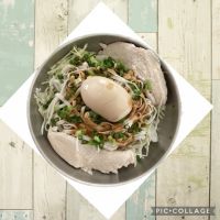 おおお! 健康的にボリュームアップですね。 薬味ものせずに物足りないと言ってた私とは大違い。 リアルでご相伴に預かりたい。。。 平打ち麺風は見当たりません。 味玉、サラダチキン、千切りキャベツ、、、φ(.. ) ケンミンの汁なし担々麺風が米粉麺だったはずだから、買ってきてマネしようかな。 とかいいつつも、買い物行く気力どころか作る気力も食べる気力もないので、最近の夕飯は納豆ごはんで固定です。 早く秋になってほしい。