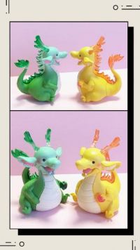 これ、昨日ガチャパトしてて、見つけた「虹龍」の龍たちデス。ちょとおデブ?( *´艸`)
