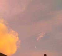 今日の19時過ぎの空がキレイなオレンジ色でした。小さく映っているのは月です。