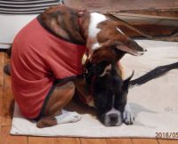 くまぁ~さんサマ♪ 1枚目の写真を見て、私の思っていたシーンと違う・・・ と感じましたが。 原因は、私の記憶がいい加減だったせい、でした~。 シヴァんこ激怒の理由は、くまぁ~さんサマの添付の写真の通りで。 ガキんちょⅠが右後肢の上に乗ってしまったから、だったんですが。 私の勘違いしていた写真は、被害犬と加害犬が逆でした・・・。 今回添付した、この写真のシーンが頭にあったから、 『シヴァんこの前肢に~』という表現だったんです。 ま、やりつやられつ、結局はいいコンビだったんですかねぇ~。 #シヴァんこ #ガキんちょⅠ (撮影記録:2018年5月)