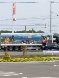 ザリガニくん。皆さま。この前コストコ行った時に見かけたルパントレーラーです。一瞬なので少し写り悪いですが許してね(^^ゞ 北の大地、ルパントレーラー走ってたよ。です(*^^*)