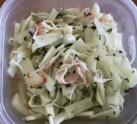 そらこちゃん✨ シャインマスカット味食べたんですね(=´∀`)人(´∀`=) 娘がミルク味を食べたので、少しもらったらヤマザキのナイススティックのクリームに似てると思いました(個人の感想です)。 生地が美味しいですよね〜。 スーパーでも取り扱いあるのですね。 昨日作った大根とカニカマと大葉の和え物です。 いつもは具材同じでポン酢とマヨネーズで和えるのですが、昨日はカンタン酢(+馬路村の寿司酢)で和えました。 サッパリしているので夏はカンタン酢バージョンもいいなと思いました(*^^*) 残ったのを冷蔵庫に入れておいたら味が染みてました。