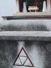 アタシの事だから「その辺に沢山あるお地蔵さんにゼルダのトライフォースマークを合成した」って思ってないかい? 御神具にもマーク入ってるやろ~♪ 1600年の歴史を持つ治水を司る神社の裏鬼門方向にある路地裏(旧街道)の祠や。トライフォースマークはミツウロコって北条氏の家紋でもある、竜神の鱗をあらわしたマークや。ドヤ( 〃▽〃)