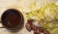 そうめんの代わりにビーフンを食べていて思いつき、ブン・チャーを作ってみました。 ベトナム風つけ麺なんて言われたりもしますが、ビーフン+肉団子+生野菜を甘酸っぱいタレで食べる、ハノイの名物です。 ナンプラーないので、薄口しょうゆとレモン汁等で代用。 レタスが多すぎて見えませんが、コストコのデリカのごとく、下にはビーフンが隠れています。 タレも肉団子も自作、手間がかかりました。 結論。 ブン・チャーは外食に限る。