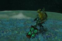 なんで地下に居るかって? 空島から部品と一緒に落っこちたのよ(^^;) で、明かり探して移動中、今度はまたデグガーマにあってさ(カエル野郎) こっちは命からがら(ToT) 最近、ヒノックスとか今まで避けて通って来た大きな奴らが、避けて通れないような場所に居るの。少し強くなった気がするけど、でも転げ回って戦ってるわ(^^;) もう少しコスコさんみたいに華麗にプレイ出来たら良いんだけど…。