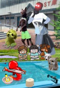 オージー水泳教室、今年も賑やかに開催中♪ #画像 #天照大死婆神サマ #海老Z(仮名) #オージー #ビリ子 #風呂ランちゃん #コットン #3匹 #コスト庫