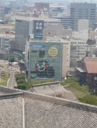 熊本城は以前は駐車場からすぐだったみたいなんだけど、改修工事で変わってしまったのかもしれないですね。 天守閣に上がるのに思いやりエレベーターなるものもあったのですが、乗り換えがある上に健常者は階段で上るように言われました。 天守閣から駐車場までの間に沢山のお店があったのですが、小さなウニコロッケが1個420円。。 買えませんよね( ̄▽ ̄;) お茶屋さんの抹茶のかき氷が絶品でした。 歩く元気があるうちに行けると良いですね。 天守閣の展望台からくまモンが見えました。