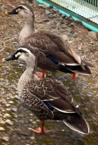 一般的に生き物は『雄の方が綺麗』とか『派手』とか言われますが、 念のためググってみたら、カルガモは判りにくいみたいですね。 しかし、やはり雄の方が模様がハッキリしていて、オチリの辺りが黒いとか。 添付画像の手前が先発の鴨サンなのですけど、上の説明からだとコチラが男子? #画像 #鴨 #カルガモ