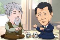 「くつろぎの一時に骨董の茶碗でミキプ○ーンを...」 「イヤイヤ...若い頃はバーボンだったが、今はユキちゃんのおチチを木彫り椀で...」 H&D「お茶、飲めよ...」 #画像