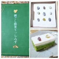 こんばんわ~♪ ひめ子さんやここさんちではご慶事があったようなので、お祝いにこちらに投下?していきます。おめでとうございます。 本日、町内会マダムからスバラ式菓子をお裾分け頂きましたので、皆さまにもお福分けを。 京都の一乗寺中谷の絹ごし緑茶てぃらみす。緑茶、絹ごし豆腐と白あん、甘納豆と主に和風の原材料から出来ており、あまりの美味しさにひと口目から(小さい小さい)目と鼻の穴が全開になりましたwww。なんだか箱庭のようなお菓子です。