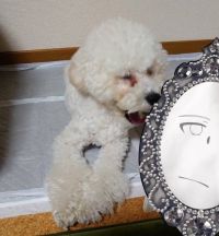 #画像 鏡よ鏡よ 世界で一番かわいいワンコは... ピン熊がしそうだから、先にしとこ♪