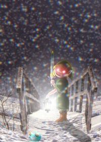 あと、人物の反省点。 元のトレス素材は小さい子の手を引くチビキャラで、左の子を消して振り返った感じにしようとしました。 でも、画面奥に向かっているところを振り返ったなら、つま先はもう少し前を向いてるべき。 右足に重心かかって、左足のかかとは浮いててもいいかな。 膝を曲げると服のしわに影響して難しいから、それは私の実力的に却下。 リンゴ飴が口元にきてるなら、お面は顔正面からズレているはずで、だったら左耳(向かって右)はお面に隠れてるはず。 お面ももうちょっとパース変形したらよかった。 お面の下はもちろん、のっぺらぼうor一ツ目小僧です♪ トレス素材をはじめ、アイビスの素材を色々組み合わせることで表現の幅は広がったけど、自分の設定をしっかり意識して素材をそこにうまく当てはめていく作業は意外と細かくて難しいです。 でも、トレースって思ってた以上に勉強になります。 さあ、そろそろ現実逃避やめて仕事しよう。