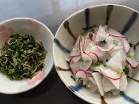 ひつじちゃん♡ ひつじ子②ちゃん、ご両親に感謝のお手紙と花束って・・・ ステキな大人になられましたね(*´꒳`*) とても良いお話を聞かせていただき、ありがとうございます✨ ウチのバ◯息子達からは、感謝のかの字も感じられませんよ(¬_¬) ラディッシュのレシピ、ありがとうございます! 作ってみました〜♪ コレ、簡単で美味しいです! 朝市でまたラディッシュ買わなきゃ(๑˃̵ᴗ˂̵) ひつじちゃんも作ってみてね♪ 葉っぱが多かったので、しらすと一緒に炒めてご飯のお供を作りました(^^)