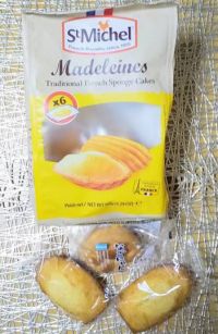 今日のおやつ。サンミシェルのマドレーヌ。アマレット風味がする不思議。香料なんかぬ。