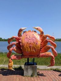 オーナーさん。そしてこちら。ドーン! 何故か、さっきの鮭よりこっちの方が旦那も妹にもウケが良かった(^^;) #画像 カニのオブジェ
