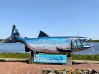 オーナーさん。要らんかもですが見せたかったのこれと次です。さっきのレストランの裏側へ行くとこれありました。 #画像 鮭のオブジェ