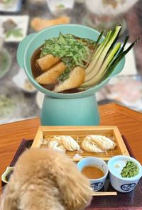 【ドッグ御膳】 #キュウリたんぽ鍋(葱抜き) #稲庭うどん #画像 #ラン #極短キュウリ #限長キュウリ しつこい!