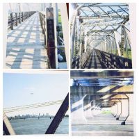 貨物線なので貨物車両なんですよ、歩くすぐそばを走り抜けて行くので迫力満点でした。 ハマって大阪~奈良方面へ行く度に、赤川鉄橋へ行っていたほど(恥)。淀川越しに梅田方面のビル群が見えるし、赤川鉄橋もね、最初は古びた板床が風情があったのに、ある日行ったら赤茶色の資材に替えられてガッカリしました。 えっと、写真を撮っていたはず…と探したら、ありました! こんな感じでしたお。 右下:淀川に刺さる橋脚。幾何学的で美しい。 左下:淡路側の川岸から見る梅田方面。伊丹空港に着陸態勢の飛行機。