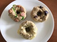 皆さま✨おはようございます。 ほんと同じく昨夜は大雨警報が出て、すごい雨でした。 今朝は風の音がビュービュー聞こえてきます。 ミルさま✨ 全然不快になんて思ってませんよ。←読み返しても訳が分かってません( ̄▽ ̄;) 今朝はオートミールとお豆腐でベーグル風を作りました。 甘みがもう少し欲しいので、改良が必要ですが… お豆腐と混ぜてレンチン1分です。 ★ウインナーとピーマン ★クランベリー ★チーズ ミルさまも良かったらオートミール消費レシピでどうですか?(*^^*) 先日娘②は抹茶とチョコで甘いバージョンやチーズを包んでナン風を作ってました。
