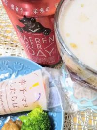 岩手盛岡のベアレン醸造所の雫石工場から。ラベル買いしたけれど、うまし! 念願の辛子マヨしたらばと。