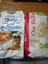 無くなりかねると買いに行くのが定番。最近、チラホラと欠品が目立つ。味付き油揚げが……。今月の売出し品なのに……。 買いに行くたび外してた二品です。コーンフレークは以前と変わらず¥108。 オートミールは¥99と少し安い。賞味期限が7月だからなのか、それとも終売? 一時期欠品してた。 画像無しですが、動物ビスケットも購入、山盛りでした。