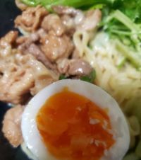 呉繋がりでこちらに投稿m(_ _)m 呉冷麺というものがあるのですね。甘酸っぱタレに平打ち麺。チャーシューがないので豚こまをエバラすき焼きのタレマイルド(やっと会えたね♡)で炒めてます。 こちらはチルド商品ですが、お店で食べたらもっと美味しいんだろうなぁ♡ 広島の人はかけないと思うけどマヨも合う~♡