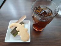 エポナ☆... 膝がな...痛いンや。原因は判ってるネン 爺様達、0.2倍速で歩くから速度合わせて祝賀パレードの兵隊さんみたいに膝伸ばしてオイチニ、オイチニって歩いてるからやねん... みんな、ドコか悪いンやな... (  ̄ー ̄)フッ... サンショウウオクッキー添え抹茶ケーキ。(っ´ω`)っドウゾ