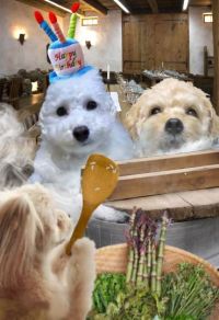 コットン君、お誕生日おめでとう! ビリコ「3歳のお誕生日メニューは『さんさい御飯』にしたなのよっ♡」 #画像 #コットン #ビリ子 #ラン #お誕生日会 #トラットリア・ビリコ #さんさい御飯 #山菜 お誕生日、今日で合ってる...よね?