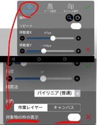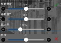 移動・回転・拡大・縮小、右下のパラメーターでいじると楽です。 縮小したい場合は拡大率を左にスライド。 垂直に移動させたい場合は移動量Y、水平移動は移動量Xです。 回転は角度で。