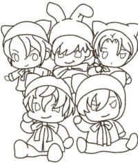 目玉師匠、さすがっス!ヌイグルミにまで目玉を追及するとは! 主線だけでスマンっス...orz 全体位置は方眼フィルターみたいなのでチェックしてまぁまぁ似せれたンすけど、細部がワカラン(特に前の二人の衣装)くて... #画像 おヒマな時に塗り絵でもいかが?