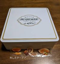 この缶に見覚えないですか? そうです、コストコで売ってるミニアソートボックスです。なんと上の商品イラストと下のイラスト文字の部分がテープになっていて取れました!! 気づいていなかったのは私だけ? スッキリデザインで2次利用決定です。(≧▽≦)