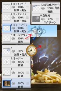 マイギャラリーに残ってたから、レシピをアップ☆٩(。•ω<。)و...の筈が、物忘れが激しいお年頃で記憶がモヤモヤσ(・ω・*)ンート… ④はibisアンティークの時計で間違いないのですが、ソコに青系のゴッドレイをかけ、ゴッドレイのレイヤーだけ残してホンモノは削除さたような気がする。。。 あ!ゴッドレイかける前に、線画抽出したかも?いや、してないかも? ⑤はフリー素材『ストップウォッチ』をDLしたもので、その後ダーツに色変。 背景から浮くので、⑥~⑧のゴッドレイ連射で落ち着かせ、更にibis光素材の『自然光』で誤魔化したンだったよな~(˙˘˙*)? ⑩の縁取りはフィルター『立体化平行』でやって、縁取りした側に指先で『たら~り』感を出すようにしました。 色が色だけに、殆ど自己満♪ その後でレイヤー結合してます。 余談ですが、ワンコを馴染ませるか目立たせるか、いつも迷い、結局は不自然を承知で目立たせる方にする。今回も。。。 #画像 #レシピ #ハウツー
