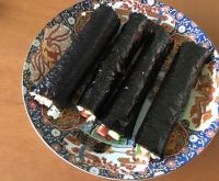 ミルさま✨ わぁ〜恵方巻き色んな種類を旦那様買ってきて下さったんですね。 鬼まんじゅう!あわしま堂のお餅は見かけるので探してみます。 名古屋の鬼まんじゅうは生地のタイプが違うので、見逃していたかもしれません。 蒸しパン?のような生地なのですね。 ロールちゃん、短くなった?(・・?) 細巻きにするつもりが…けっこう太くなってしまいました(泣) 1/2に切って食べます。 今年の恵方を調べなくっちゃ!