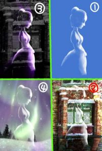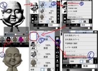普通の画像をゴーストにする方法。 地蔵だけど~明暗がハッキリ出てればカラーでも可(ただし、二値化の前にグレースケールにかけて白黒明暗ハッキリにして) で、白黒明暗画面の白黒を入れ換えて③、一旦、黒白入れ換えて地を抜いて④、白いゴーストを作る(⑤で白黒を戻す)、保存⑥