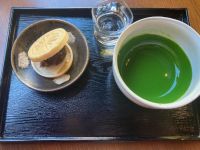 宇治で念願の濃茶をいただいてきました。 凄いねー。これ。 もったりと濃厚なのに、お茶の甘みと奥深い旨みがあって。最後茶碗に残るお茶にお湯足して、お薄にたて直してくれるので、二度楽しめます。 最中もパリサクで優しい香ばしさに上品なねっとり餡子。 美味しかったー。 行けて良かった。 濃茶向けの抹茶粉は素晴らしいお値段で手が出ませんでしたが、薄茶用の粉と、煎茶の葉をお土産に買ってきました。 しばらく余韻に浸れます。