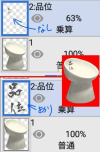 設定無しやったら品位が小さくて見えにくいンが、設定すると『そのレイヤーで描いてる部分だけアップ』になるから、品位が見やすいンや♪