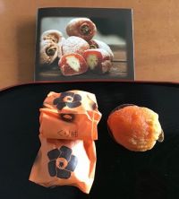 ひつじちゃん♡ 干し柿の中に栗きんとん!? 初めて見ました〜(*^^*) どちらも大好きなのに、一緒になってるなんて(#^.^#) 柿つながりで、私からはあんぽ柿をどうぞ〜♪