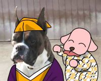 だから、こうしてお絵描きの素材にされる。 オージー君も弄られまくるけど、オージー君が不幸な犬だと感じたら誰も弄りませんよ! プリン様家も、オージー君に時間を使ってますよね~。