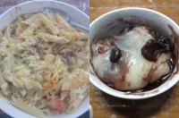 左。カレーグラタン、そんな物があるかは不明。ペンネを茹でて食べなくてはならないので、残り物のカレーをベースにしました。で、スキットレ?にカレー、茹でたペンネ、シュレッドチーズを振りかけてグリルで数分。簡単です、カレーライス、カレーうどんだけではバージョンがないと考えた新作。 右。鏡開きで鏡餅を食べるべく加熱する時に手作り羊羹を少し散らし、汁粉とは言えないモドキとも言えない物です。レンチンして食べるのでは脳が無いと考えてひねりました。羊羹を増やせば見栄えがするのですが、そうは行かなくて(汗 羊羹は大晦日に作り、数日前にサイコロ状にカットしジップロックコンテナで冷蔵庫保管してました。年に1度しか作らないので上達しません(笑)。そして、高気温(平年比)でカビ?を防げたかなと。