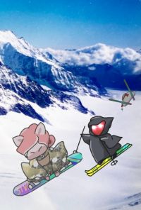 オーナーさま。 楽しいお絵描きありがとうございます♪ 『海鮮食べ放題』じゃなくて『焼き肉食べ放題』なのは、オーナーさまの優しさですね(≧∀≦) 山だから海鮮は無いか(笑) 最後の『アホ〜』に笑いました\(//∇//)\ アルペンホルンの画像もありますが、人が吹いている(当たり前だけど)ので載せられなかったです。 まぁ〜さんさまが今日まだいらっしゃらない… 画像を貼り付けだけしたんですが、シュプールの描き方もわからないし、オチが思いつかなくてギブアップです_(┐「ε:)_